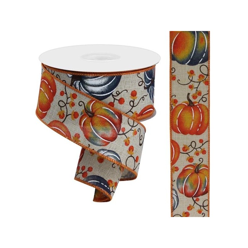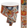 Autumn Pumpkins & Bittersweet Berries Wired Edge Ribbon - 1.5" x 10 Yards (Light Natural, Rust, Orange, Smoke Blue)