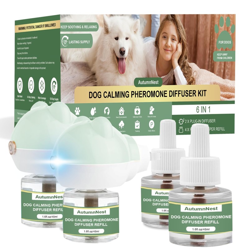 Dog Pheromone Calming Diffuser Kit, Calming Diffuser for Dog (2 Plug-Ins & 4×48ml Refills) for Stress Support, Helps Reduce Barking & Aggression, 120-Day Supply (Non-Toxic, Safe & Inedible)