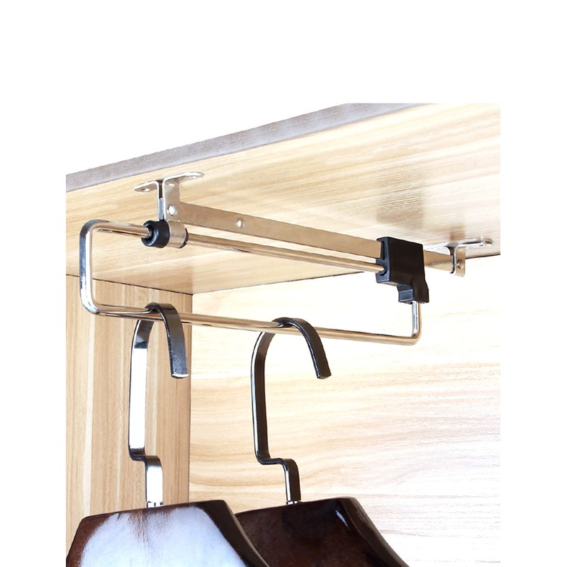 - Universal Application---Mainly suitable for wardrobes and storage areas,is a space saving storage solution.Can also be used as a towel rack in the kitchen or bathroom.One pull out closet rod,many ways to use.