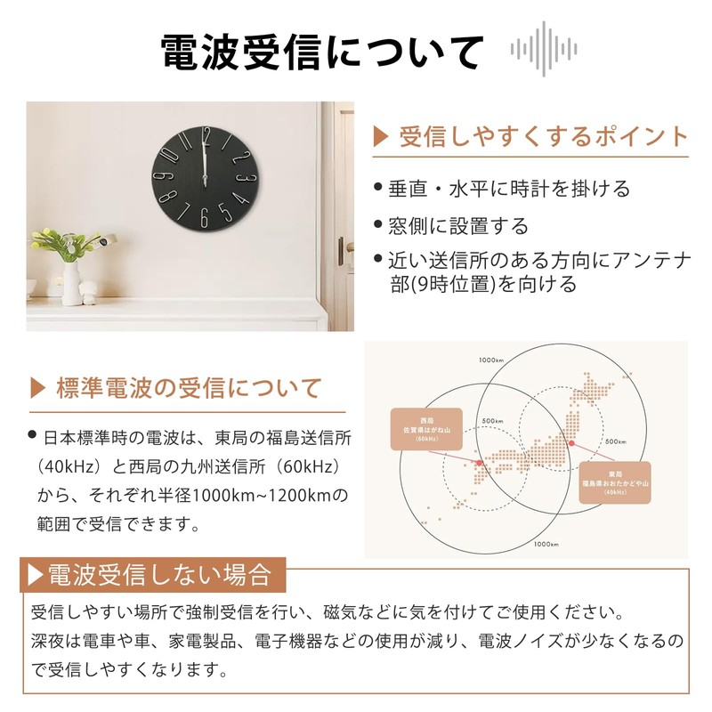 - Automatic Reception / Manual Reception: It comes with a radio wave reception function, so you can set the time automatically by simply installing the batteries. Even if the radio wave reception fails, simply press the forced reception button to set it again. It is used by quartz in places where there is no signal reception