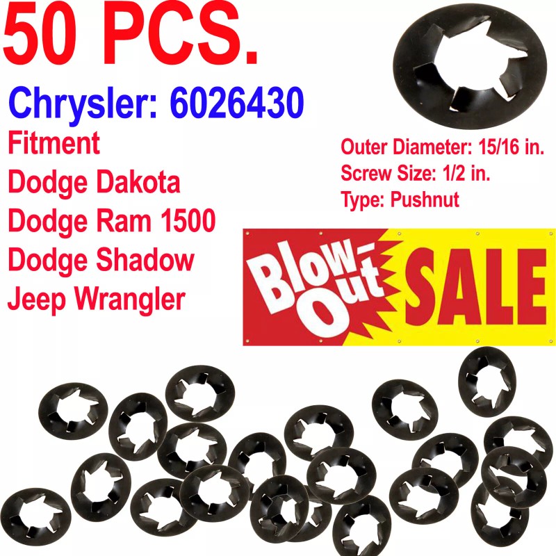 Auveco Pushnut Bolt Retainer for 1/2" Bolt, 15/16" OD - Chrysler: 6026430 (Qty: 50)