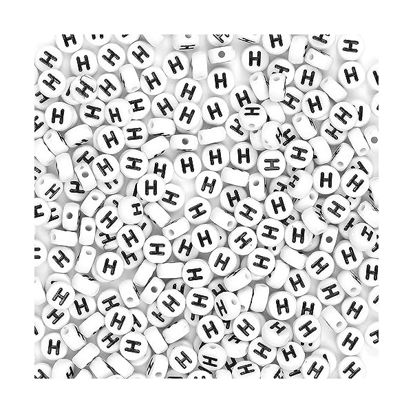 Auvoau 300Pcs Letter Beads H 4X7mm White Alphabet Beads Acrylic Round Shape Loose Beads for Name Bracelets Necklaces Key Chains DIY Jewelry Making (H)