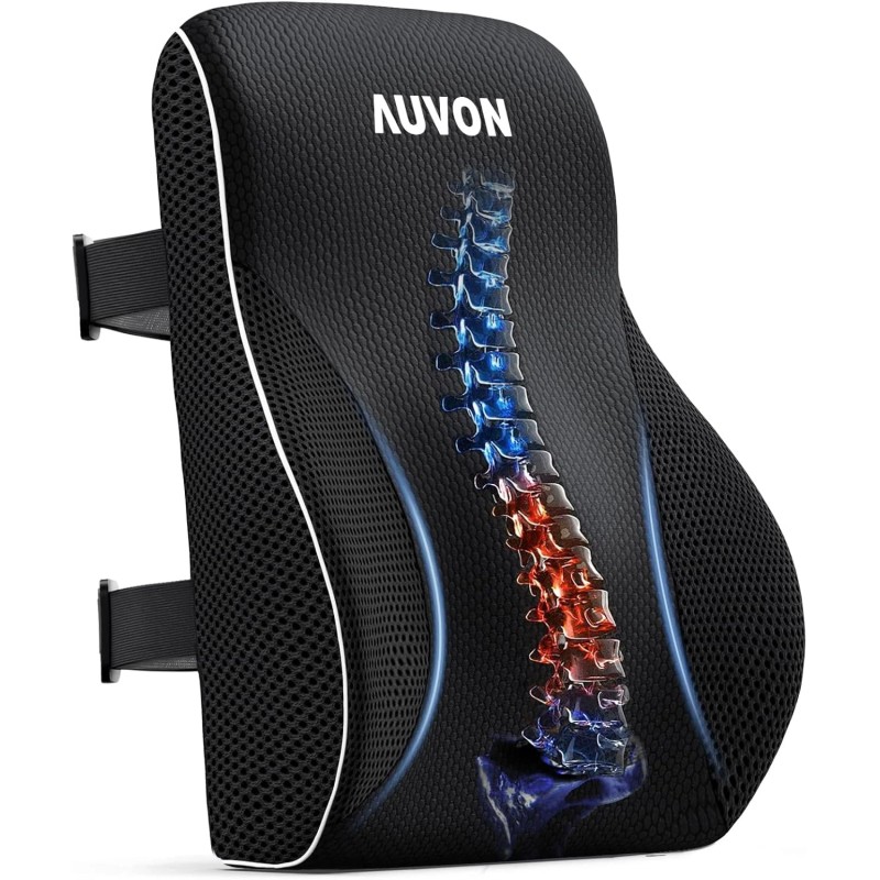 AUVON Lumbar Support Pillow Ergonomic Memory Foam w/Straps