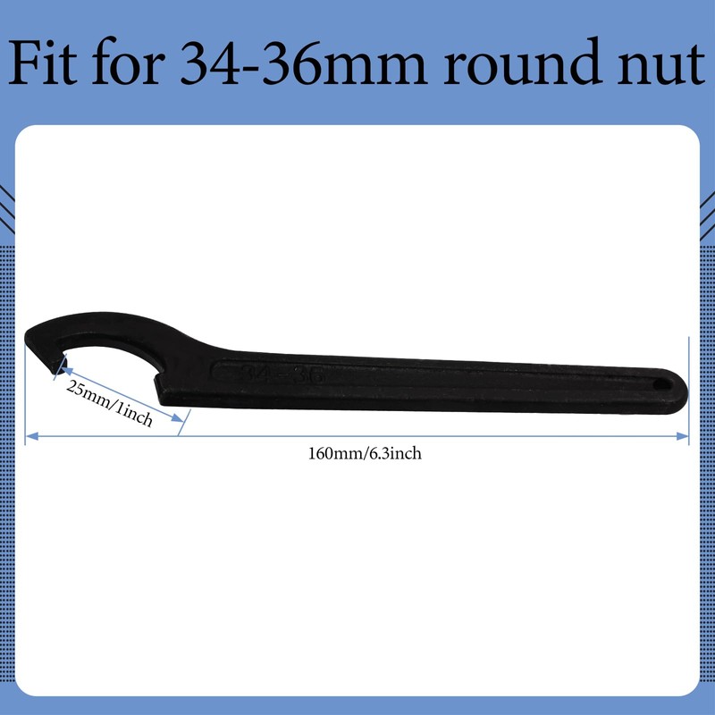- Package & Size: 1Pcs black c hook spanner wrench, total length is 160mm/6.3inch. Fit for 34-36mm round nut.