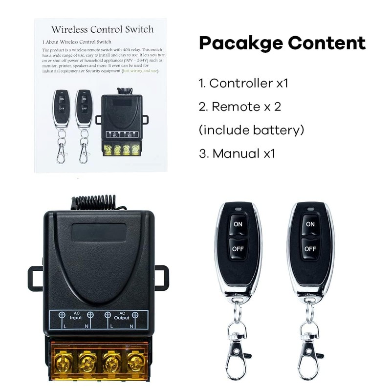 auvrtioa 40A Interruptor de Control Remoto inalámbrico de Alta Potencia 433Mhz de Control Remoto RF AC 220V/240V/110V para la luz, Bomba de Agua, electrodomésticos, riego agrícola (2T + 1R - 300M)