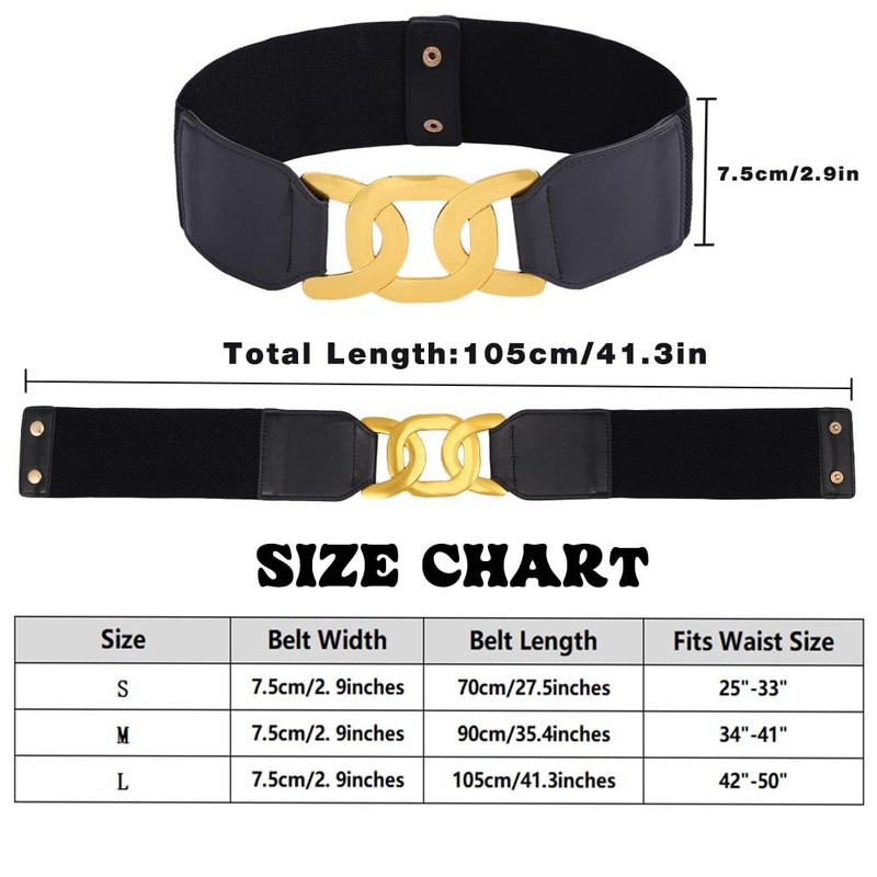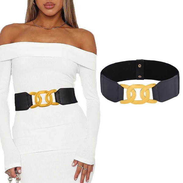 Auwoyss - Cinturón de piel elástico para mujer, cinturón ancho, cinturón elástico, clásico, hebilla para mujeres y niñas, Bg-crossover, M