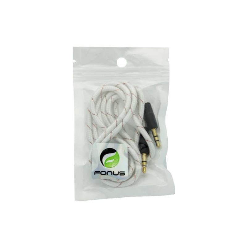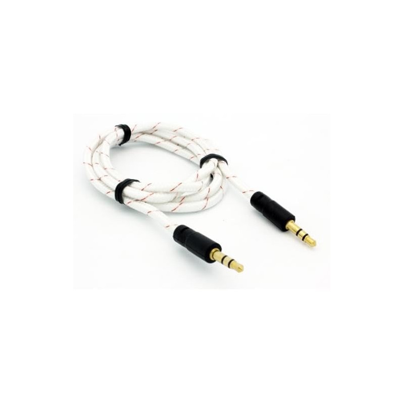 - The auxiliary cable features a braided design that prevents tangling.