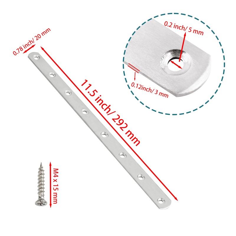 - Dimension: Size: 292x20mm/11.5 x0.78 inch(L*W). Hole Diameter: 5mm/0.2inch. Screw size:M4x15mm. Thickness:3mm/0.12inch.