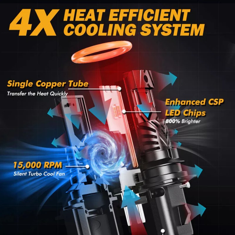 - Whole aviation-grade aluminum body,15,000 RPM high-speed silent cooling fan, single copper tube design & enhanced CSP LED chips. Provide good cooling ability, which ensures a longer lifespan of up to 60,0000 hours.