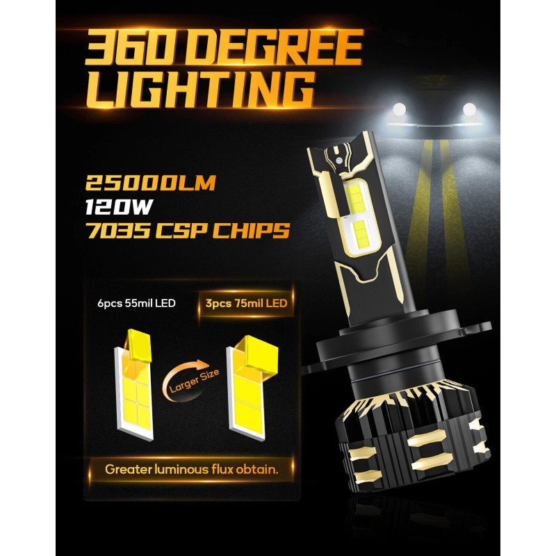 * 650% Brighter strong power 120W 25000LM Brightness output.