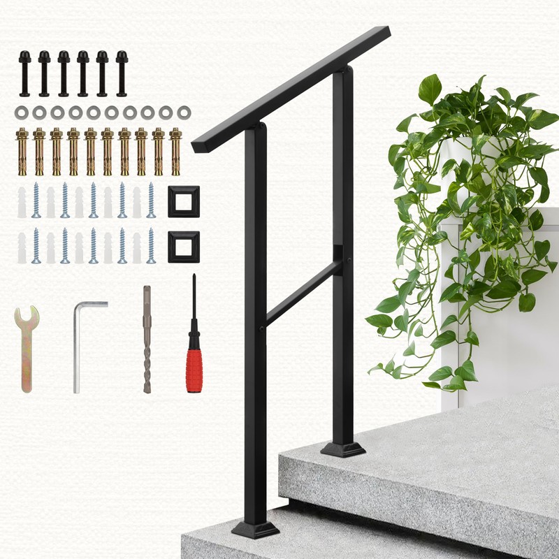- 【Adjustable Height】 This handrail can be easily adjusted to your desired step height without any modification to the railing. Wrought iron handrail is not only suitable for vertical steps but also for horizontal surfaces.