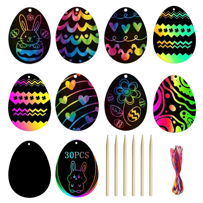 - Easter Craft Set: Unleash your children's creativity with our Easter scratch art set, including 30 scratch doodle pads, 30 colorful ribbons, and 6 high-quality scratch tools!