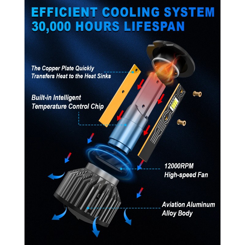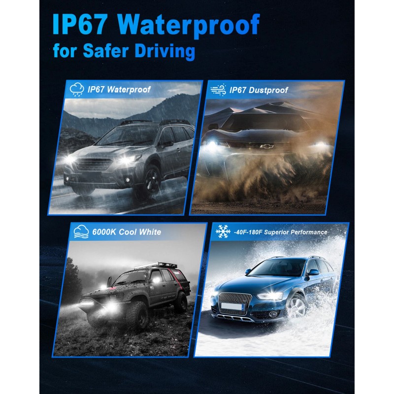 SUPER BRIGHT: 100W, 36000LM per pair with stronger, more concentrated light output, 600% brighter than the original halogen bulbs, allowing you to see more clearly when driving at night.