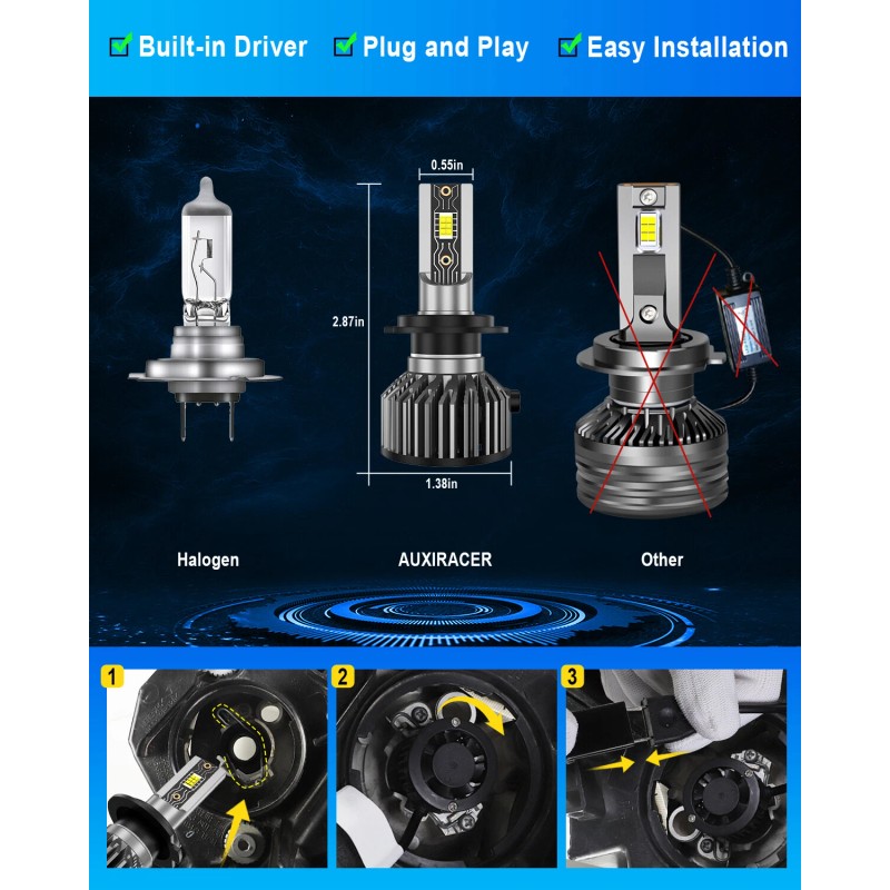 Auxiracer Pair of H7 LED Headlights Low Beam Bulbs Canbus Kit Cool 36000LM 6000K Pack of 2