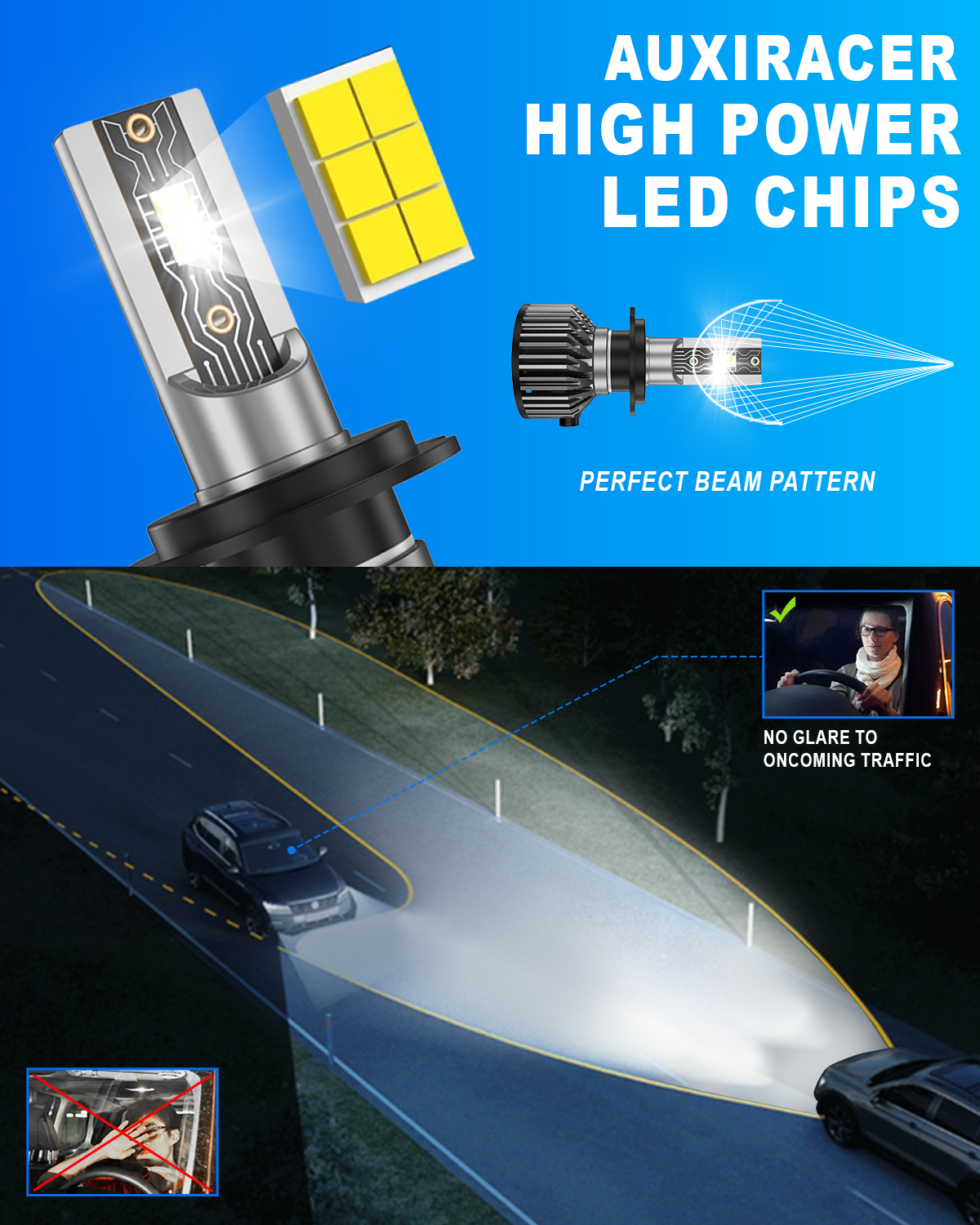 OPTIMAL BEAM PATTERN: Our LEDs have the same beam pattern as the halogen bulbs with a clear cut off line, without any dark spots or shadow areas and no glare to oncoming traffic.