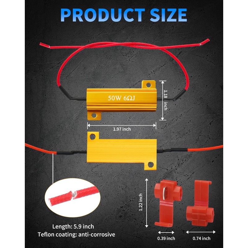 - Specification 4Pcs 50W 6ohm Load resistors with 8Pcs T-Taps. Mounting screw not included. Vlotage: DC 12V, Operating Temperature: -65 - +200.
