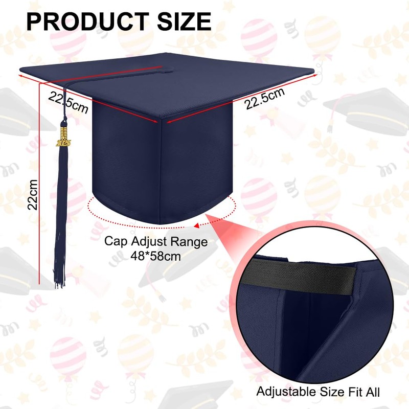 - ADJUSTABLE SIZE: The top size of the 2025 pendant/tassel graduation cap is 22.5x22.5cm, and the tassel is 23cm long. The back of the hat is adjustable to the head size, suitable for most adults to wear comfortably