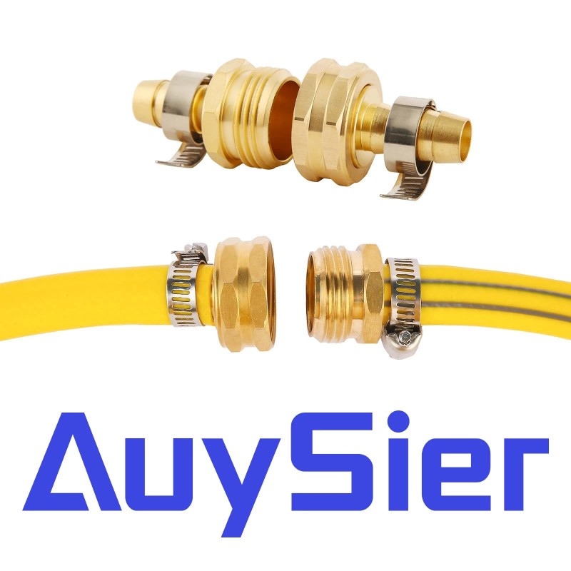 Auysier 3 Set Brass Garden Hose Repair Connector Kit with Clamps, Fit for 1/2" Garden...