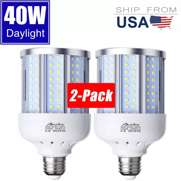 Auzilar 40W (280W Equivalent), Daylight, E26 Standard Base, LED Corn Light Bulb | 2-Pack