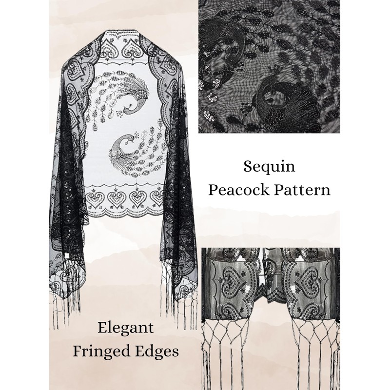 AUZURE Women's 1920s Sequined Peacock Shawl Wraps Bridal Flapper Evening Scarf for Dresses Formal Party Wedding Harlem Night