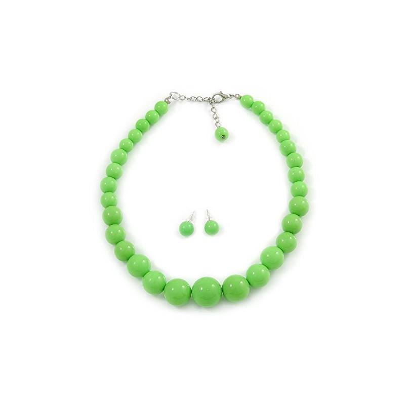 Avalaya Acrylic Bead Short Necklace And Stud Earring Set in Apple Green Colours/ 38cm Long/ 5cm Ext