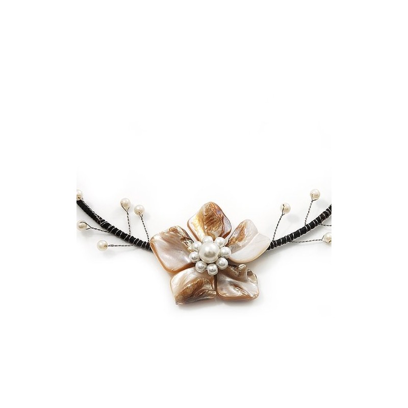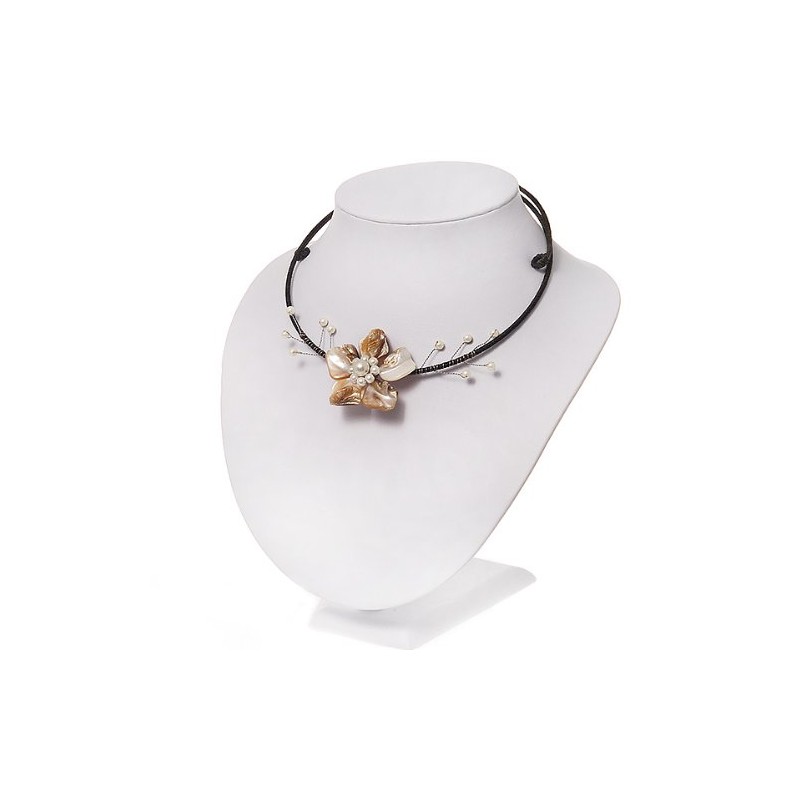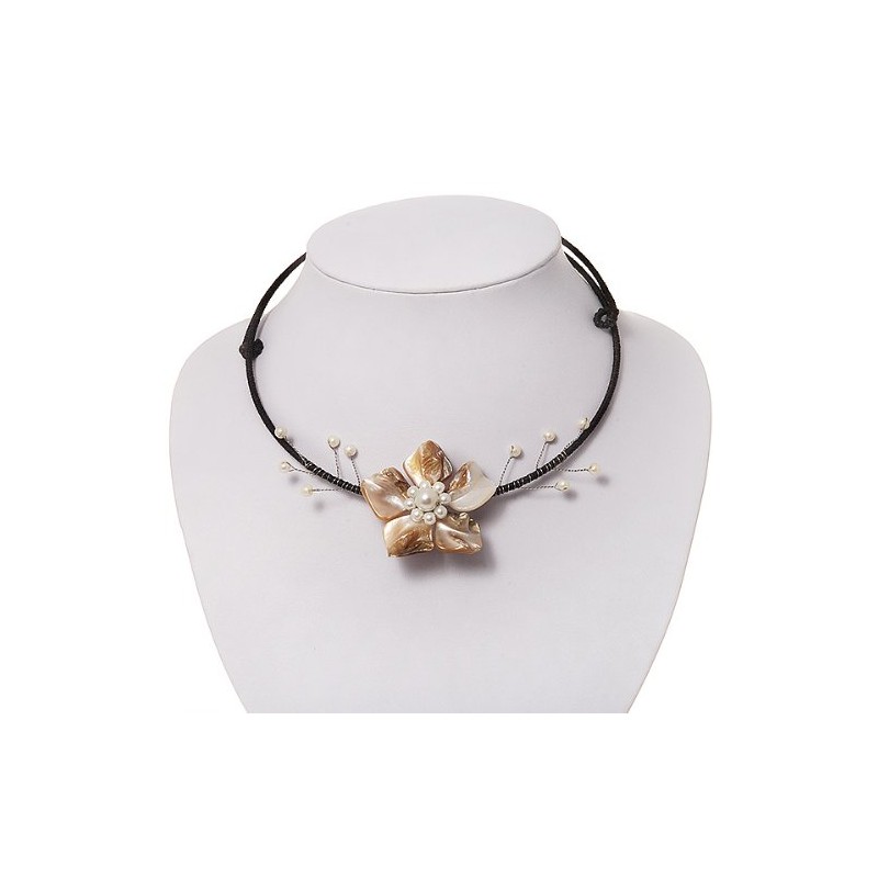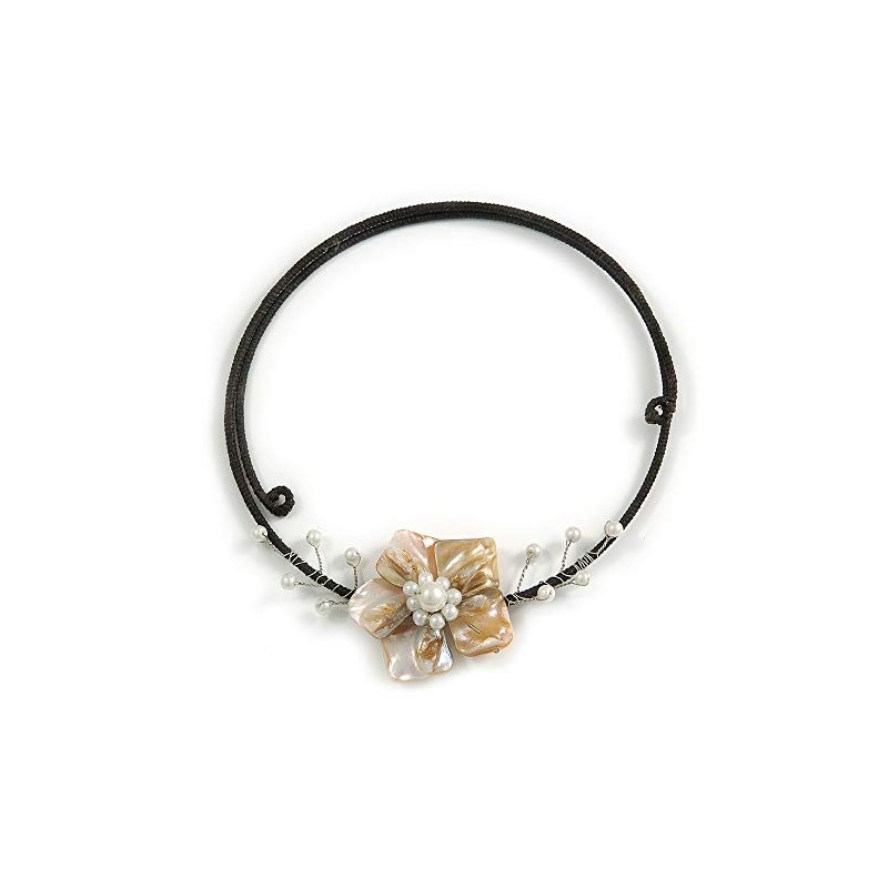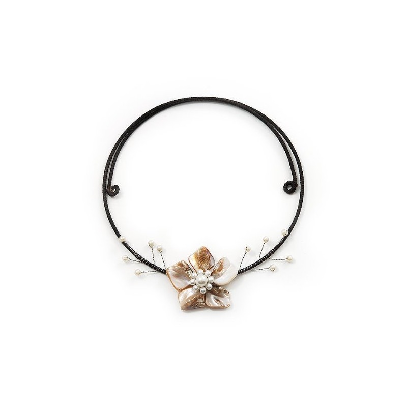 Avalaya Antique White Shell Flower On Flex Wire Choker Necklace - Adjustable