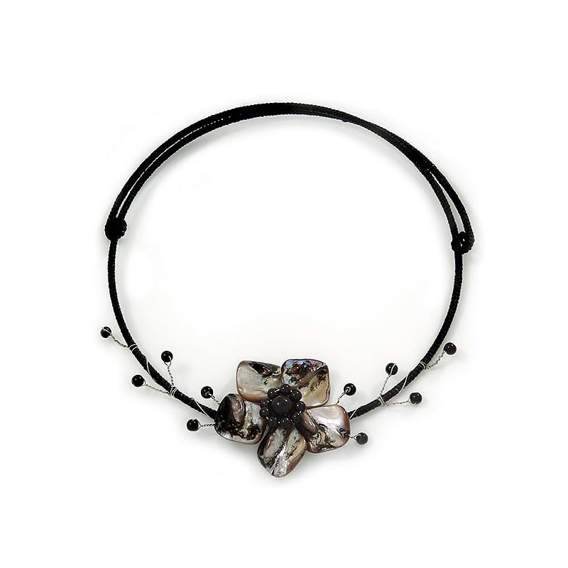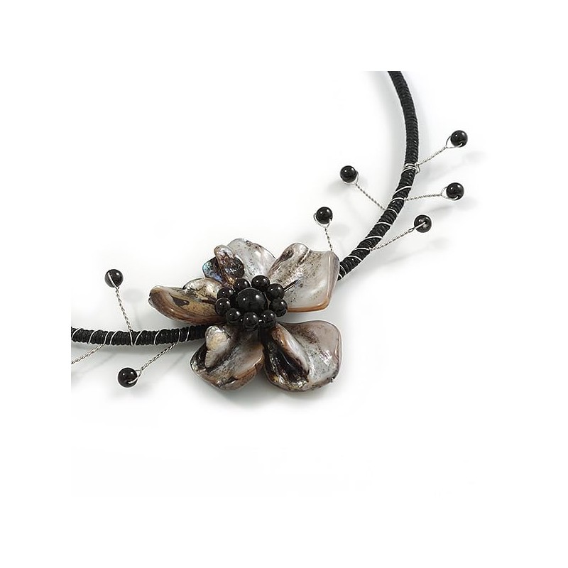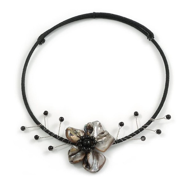 Avalaya Black/Grey Shell Flower Flex Wire Choker Necklace - Adjustable
