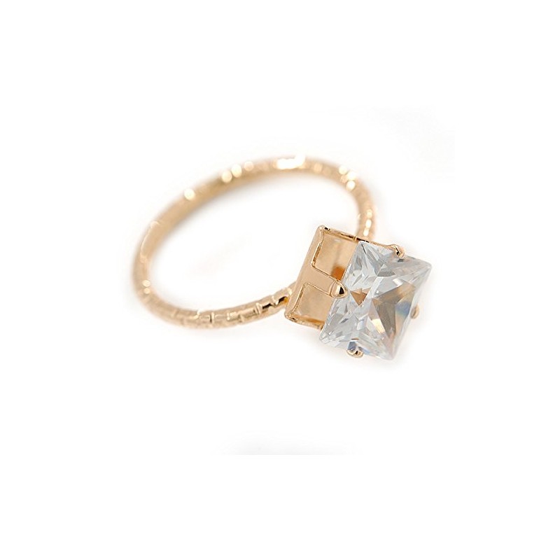 Avalaya Delicate Clear Princess-Cut Crystal Solitaire Ring In Gold Plating - Size 7