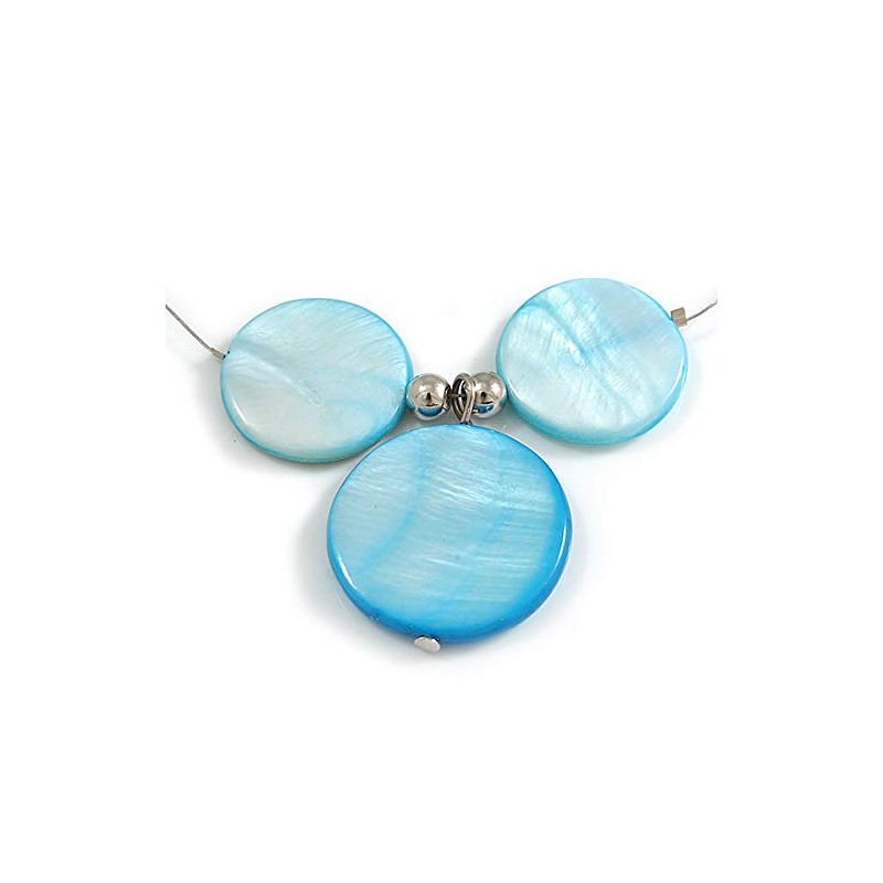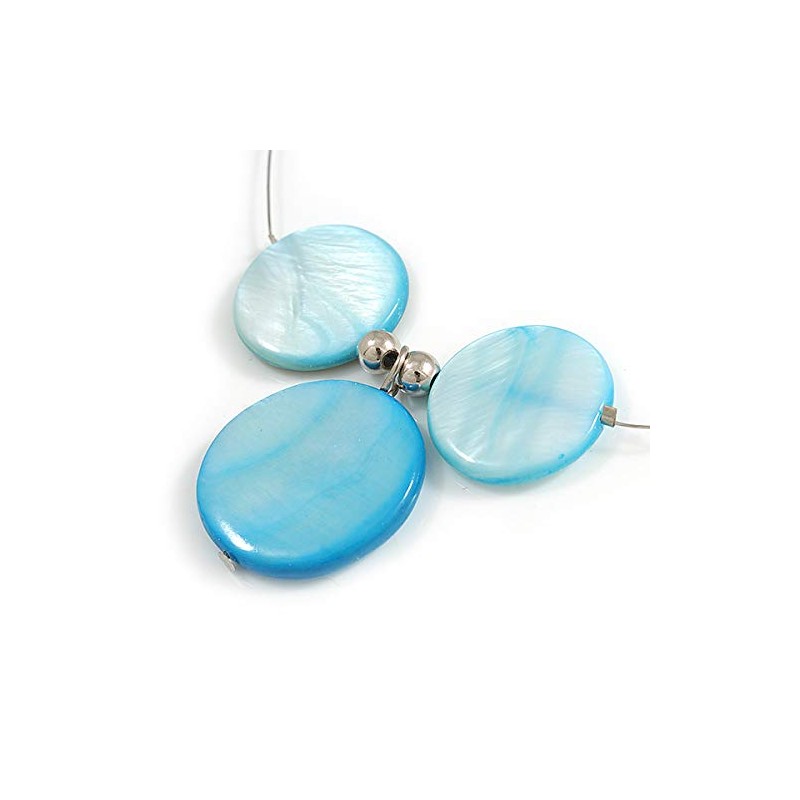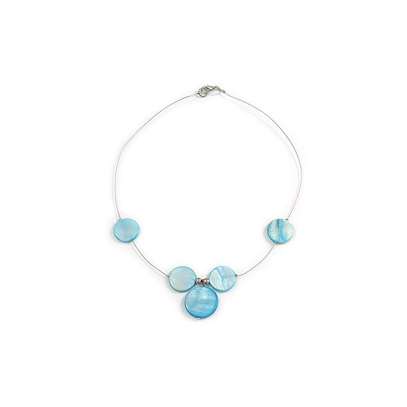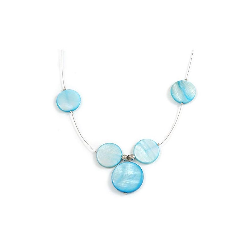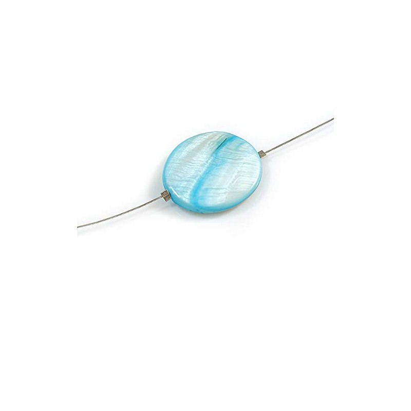 Avalaya Delicate Floating Light Blue Shell Bead Wire Necklace in Silver Tone - 44cm L
