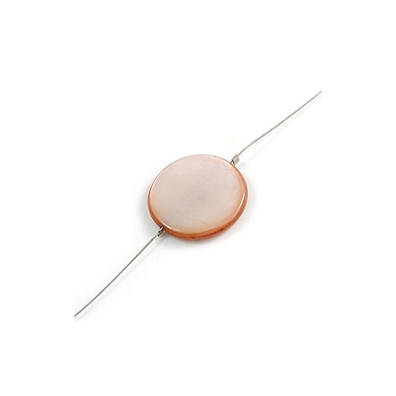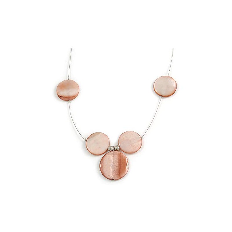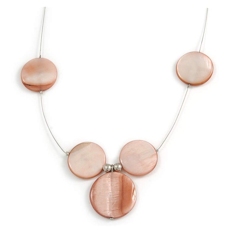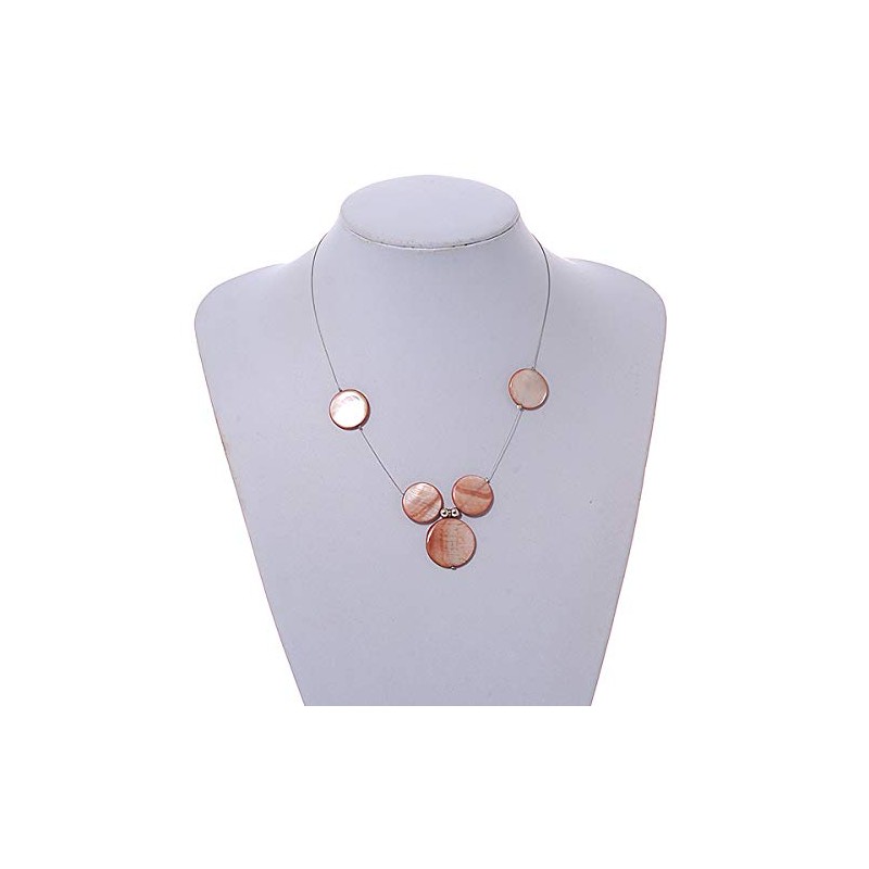 Captivate hearts with the feminine charm of this stunning piece. Featuring a delicate lightweight design, made of a silver tone wire and decorated with coin shaped shell beads in hues of light brown. It measures about: 44cm Long. Fastens with a silver tone lobster claw clasp for a reliable fit.