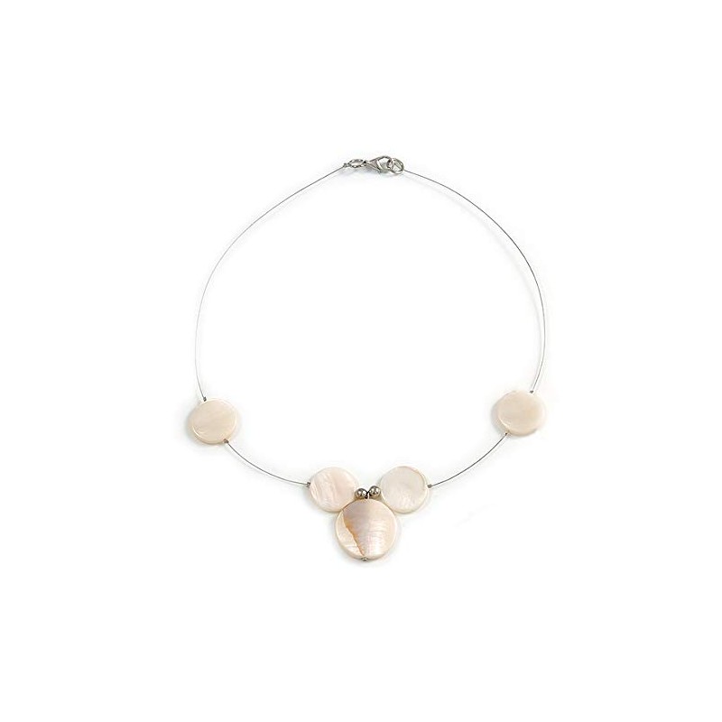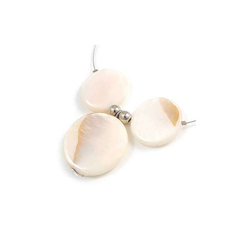 Avalaya Delicate Floating Off White Shell Bead Wire Necklace in Silver Tone - 44cm L