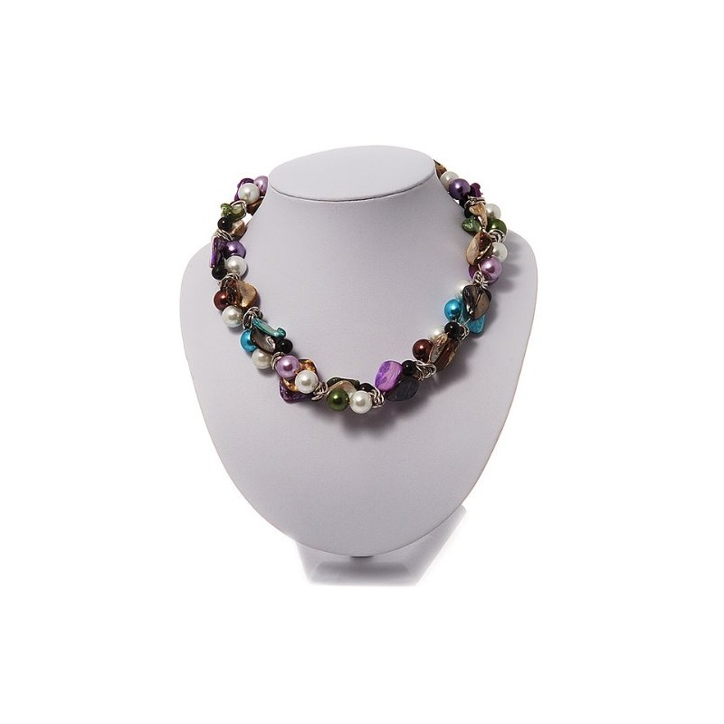 Avalaya Exquisite Faux Pearl & Shell Composite Silver Tone Link Necklace (Multicoloured)