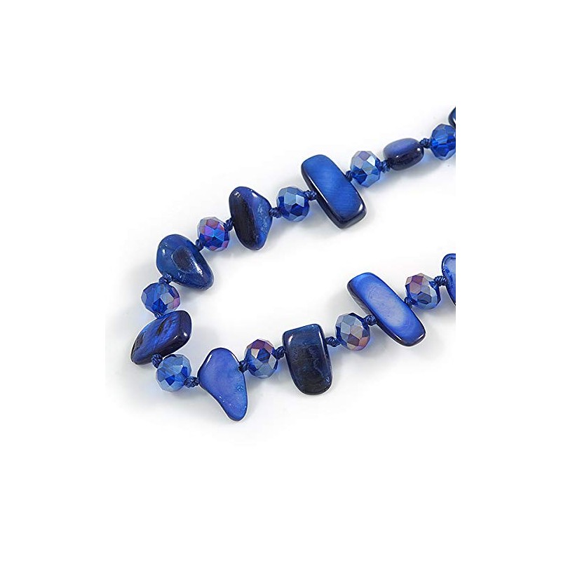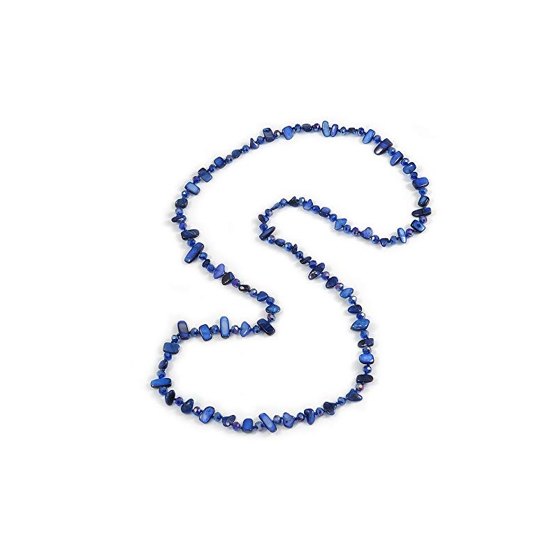 Avalaya Inky Blue Shell Nuggets/Glass Crystal Bead Long Necklace/114cm L