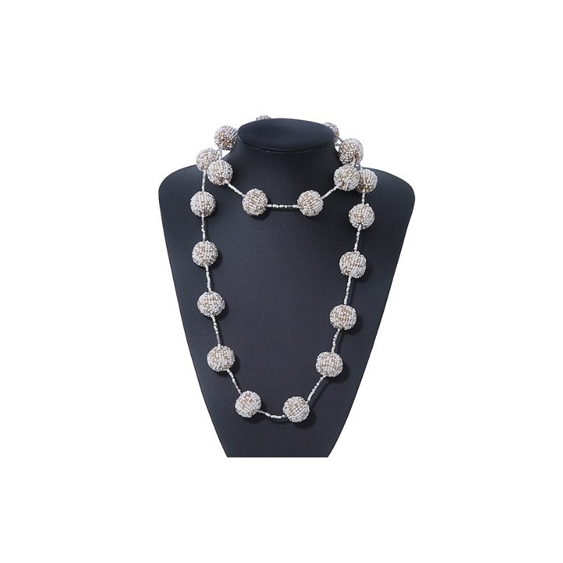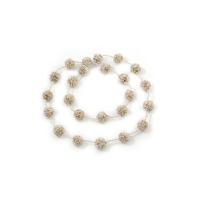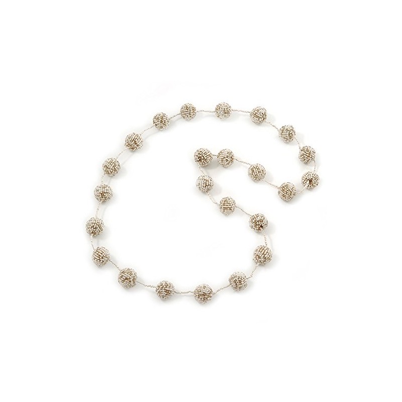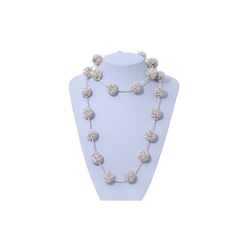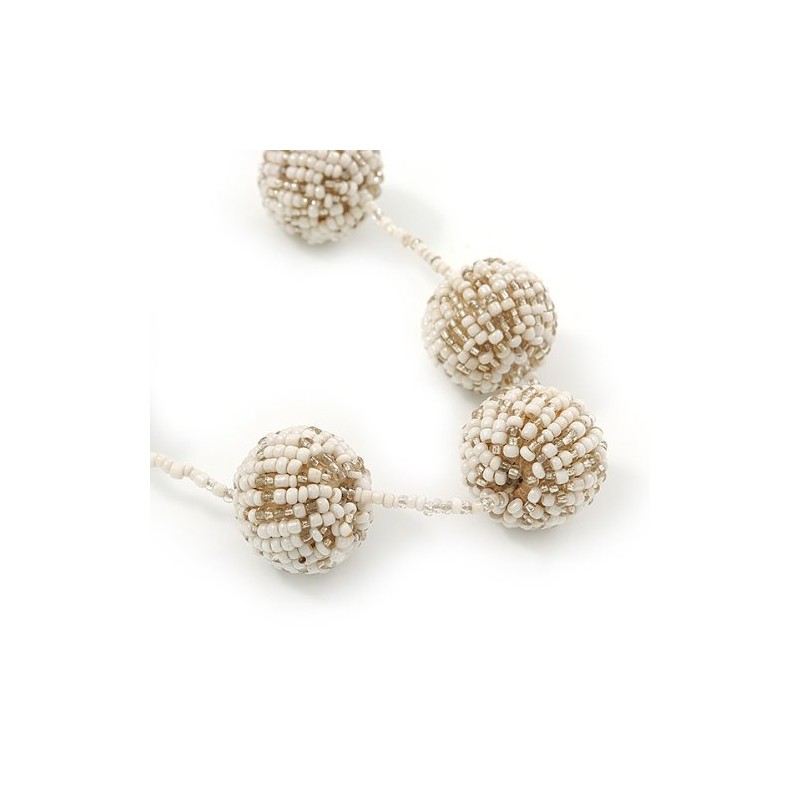 Avalaya Long Glass Bead Ball Necklace in White/Beige Colours/ 110cm L