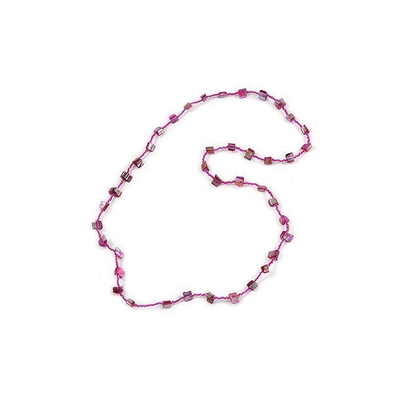 Avalaya Long Magenta Glass Bead, Sea Shell Nugget Necklace/100cm L