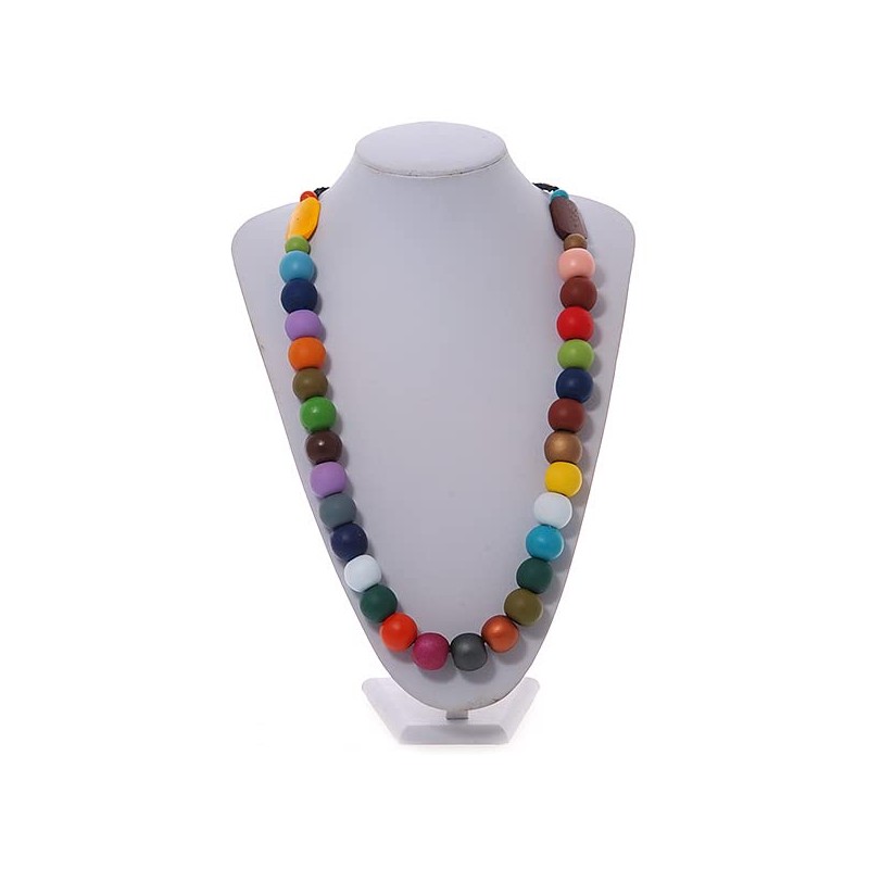 Avalaya Long Multicoloured Painted Wooden Bead Cord Long Necklace - 80cm L