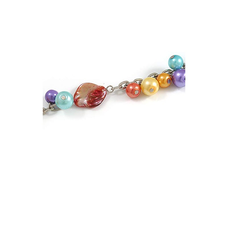 Avalaya Long Multicoloured Pearl, Shell and Resin Ring with Silver Tone Chain Necklace - 104cm Long