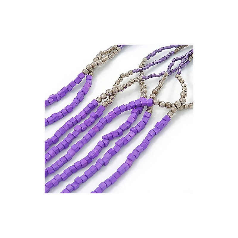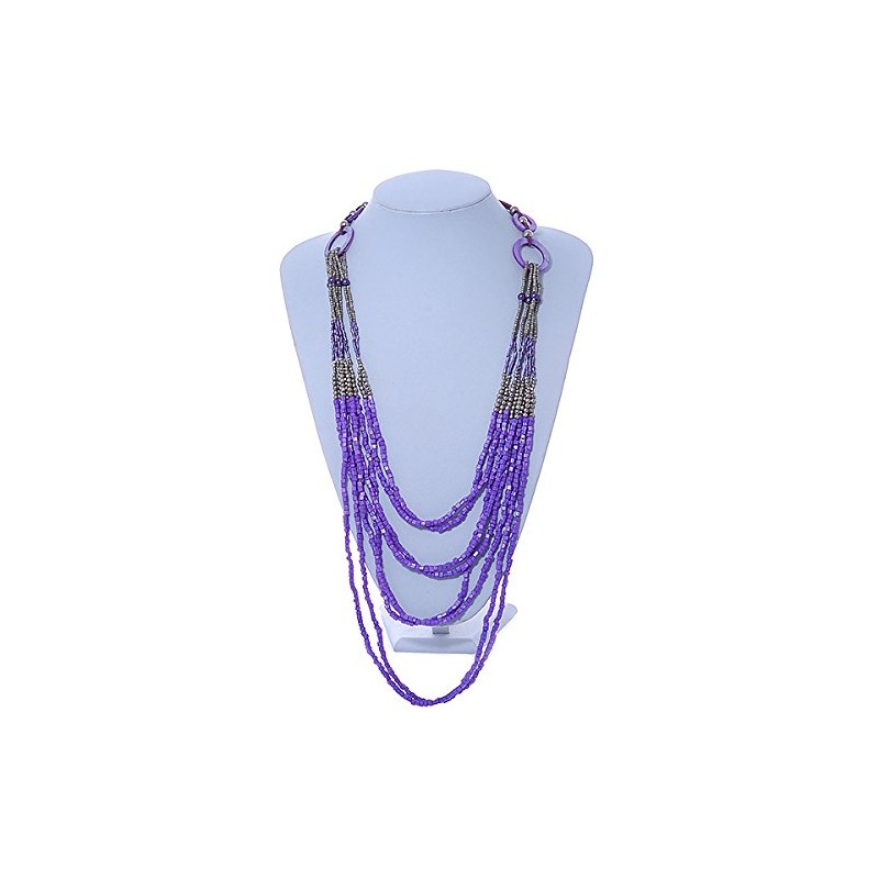 Avalaya Long Multistrand Stone Glass Bead Sea Shell with Suede Cord Necklace in Purple/Grey/Metallic/ 110cm-120cm L- Adjustable
