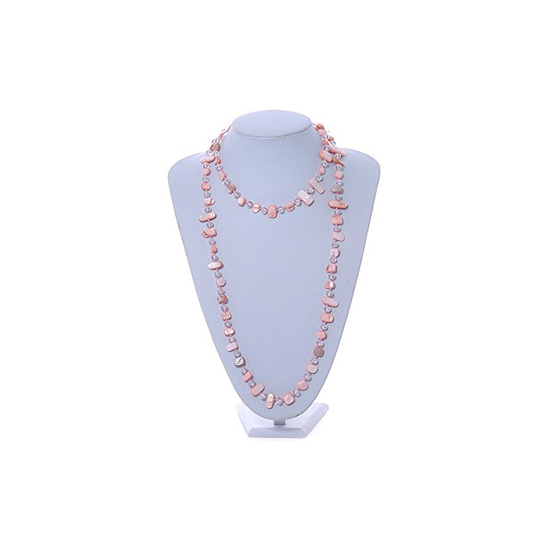 Avalaya Long Pastel Pale Pink/Transparent Shell Nugget and Glass Crystal Bead Necklace - 110cm L