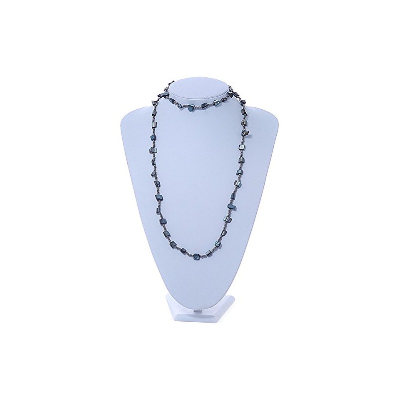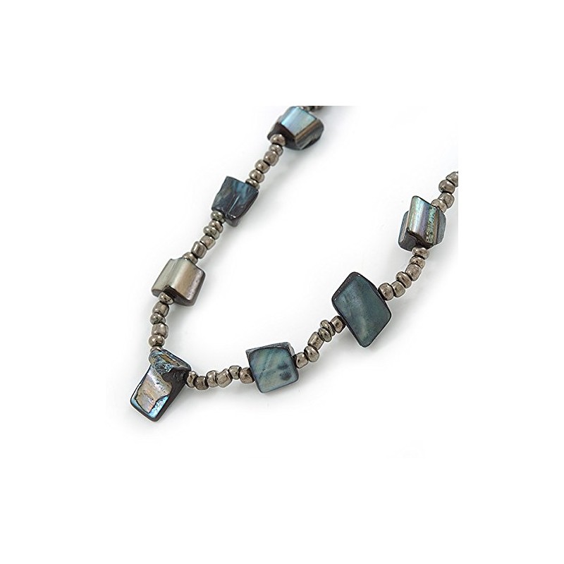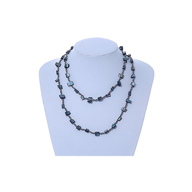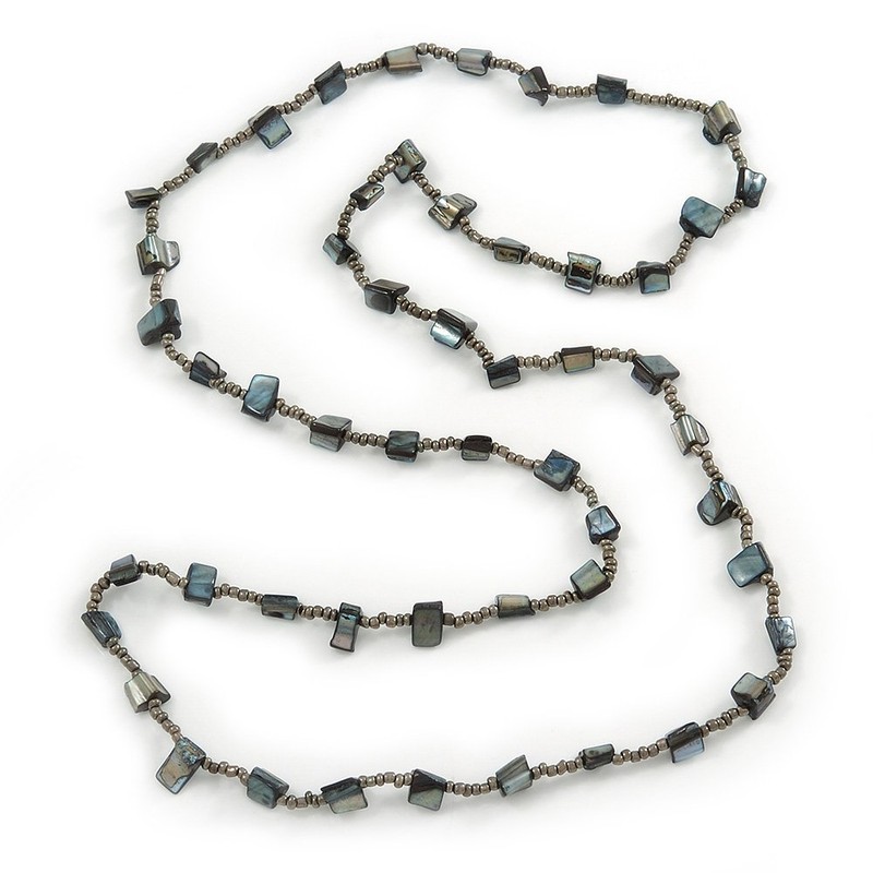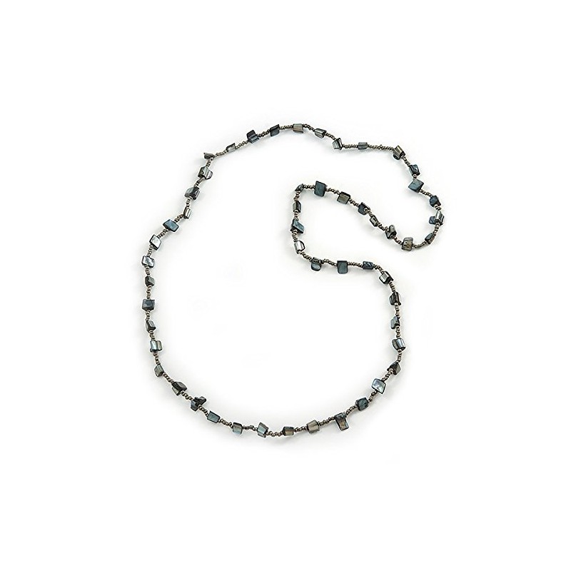 Avalaya Long Slate Black Shell Nugget, Grey Glass Bead Single Strand Necklace - 100cm L