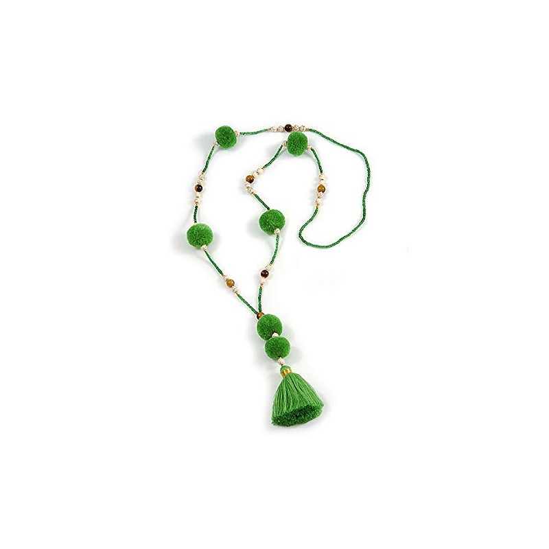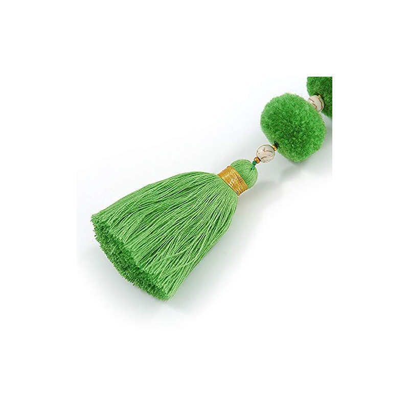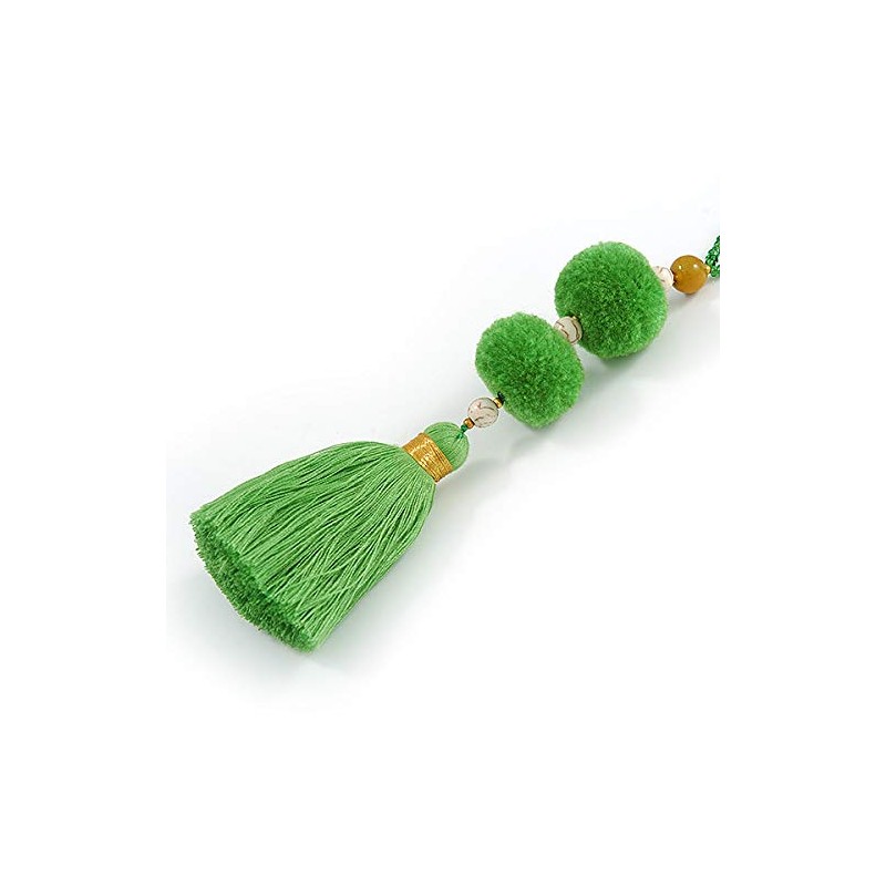 Avalaya Long Spring Green Glass Bead Pom Pom Tassel Necklace/ 88cm L/ 10cm Ta...