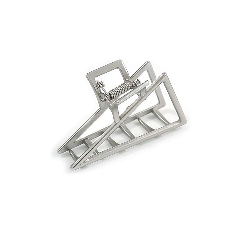 Avalaya Matte Silver Tone Geometric Triangular Hair Claw/Clamp - 75mm Across
