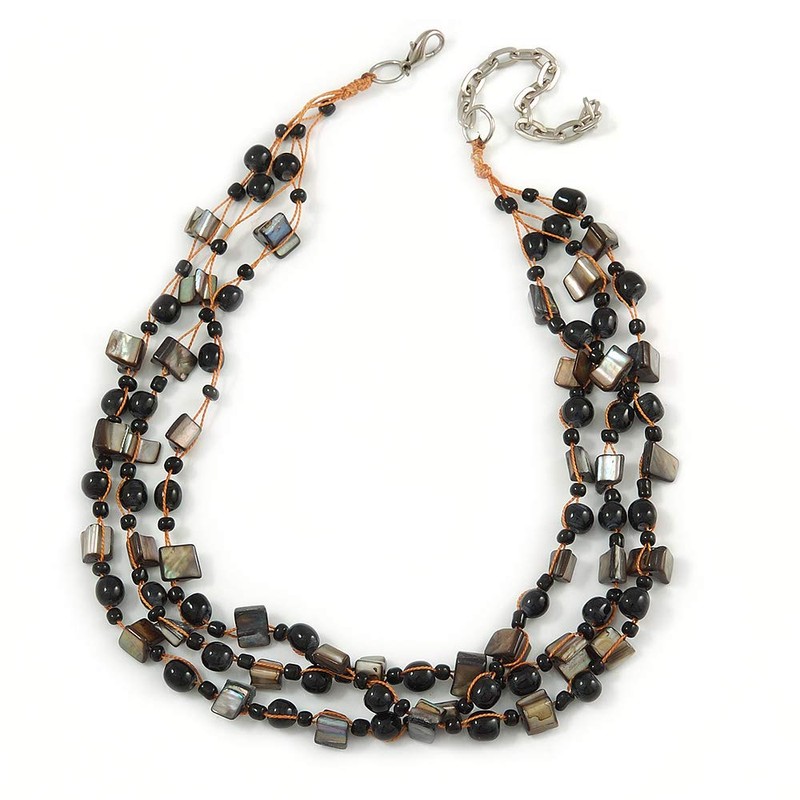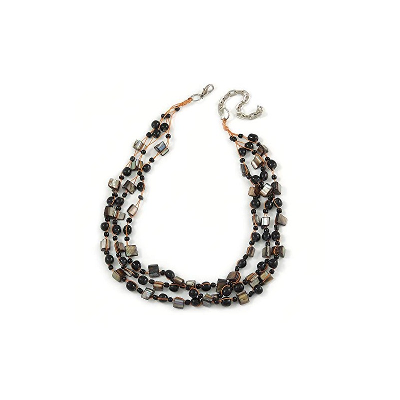 Avalaya Multi Strand Black Ceramic Bead with Dark Grey Sea Shell Nugget Orange Cord Necklace/42cm L/ 8cm Ext