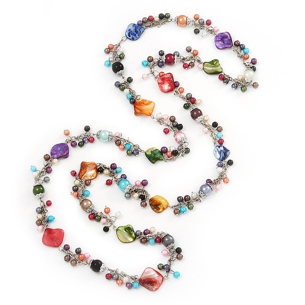 Avalaya Multicoloured Imitation Pearl, Bead and Shell Long Necklace - 134cm L