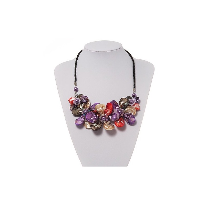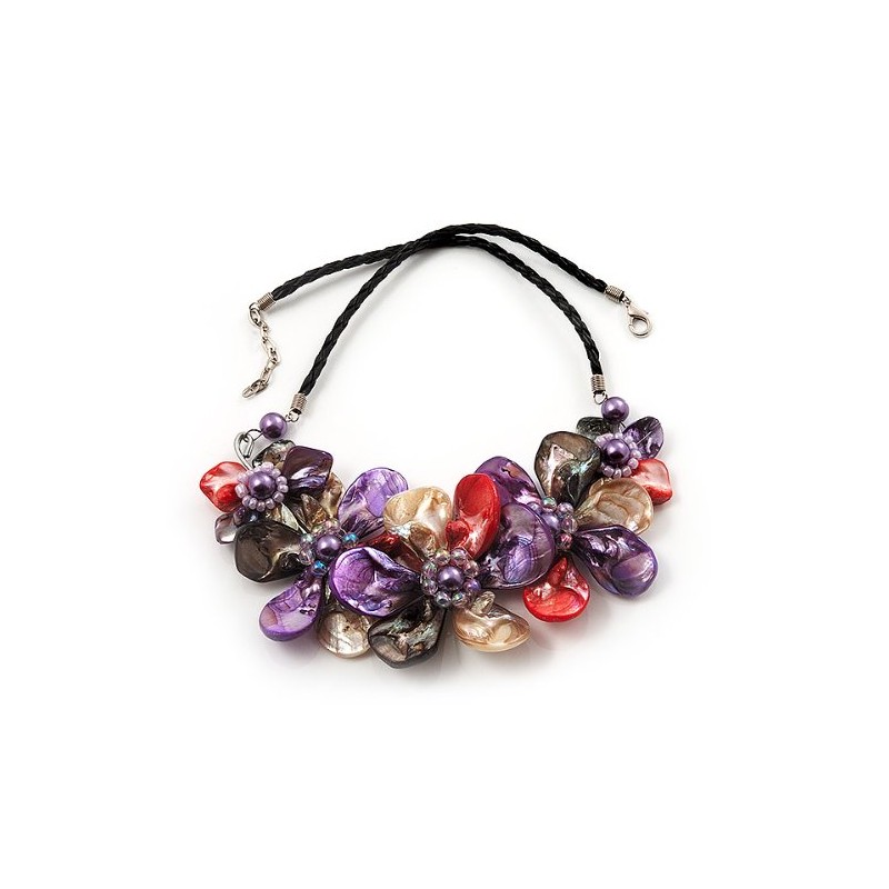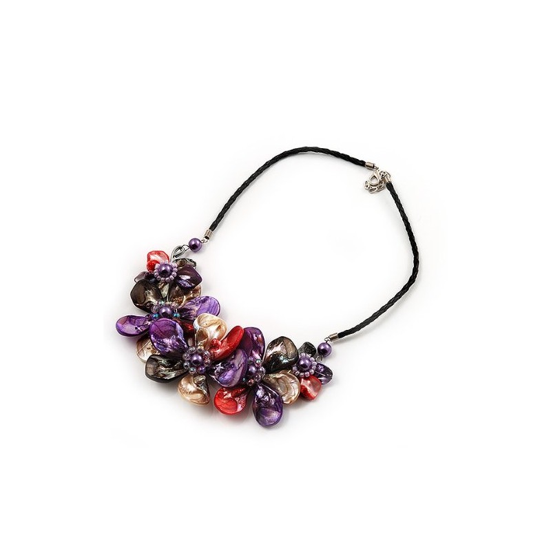 Avalaya Multicoloured Shell-Composite Faux Leather Cord Necklace/ 44cm L