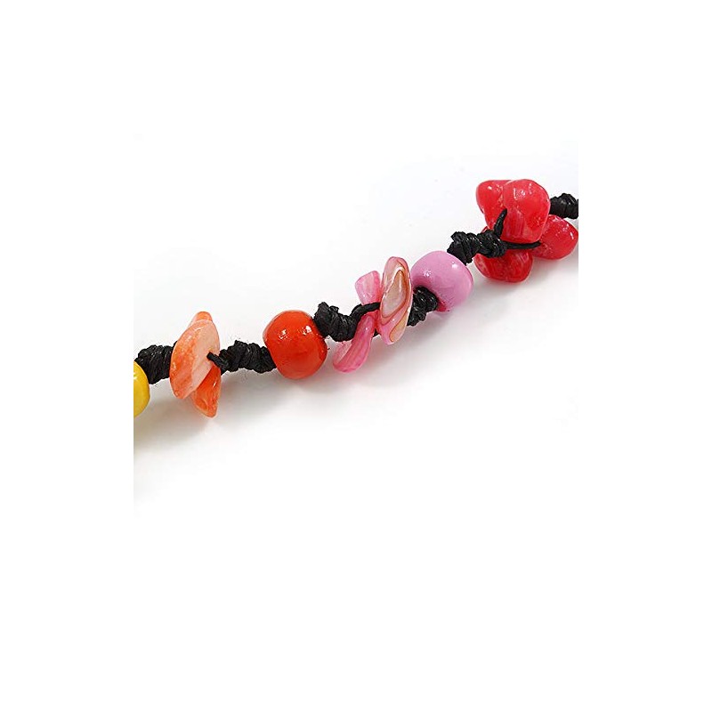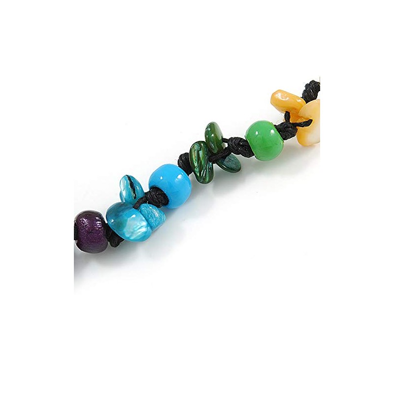 Avalaya Multicoloured Wood Bead and Sea Shell Nugget Black Cotton Cords Necklace - 72cm Long