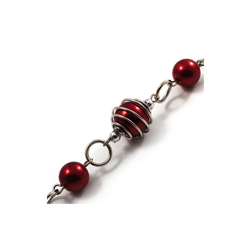 Avalaya Red Shell Composite & Imitation Pearl Bead Silver Tone Wire Long Necklace/ 120cm Long