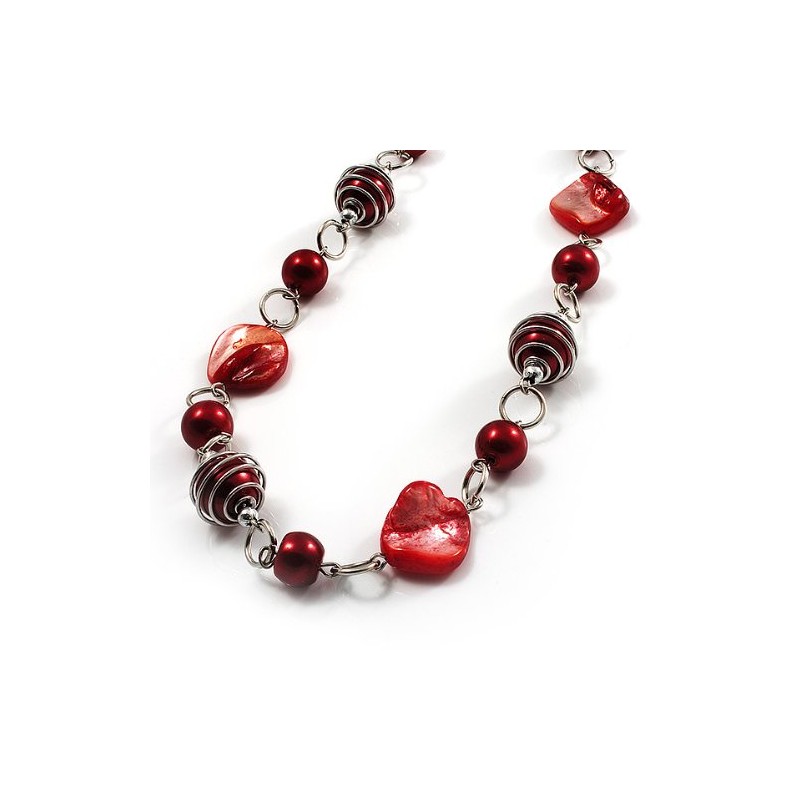 Avalaya Red Shell Composite & Imitation Pearl Bead Silver Tone Wire Long Necklace/ 120cm Long
