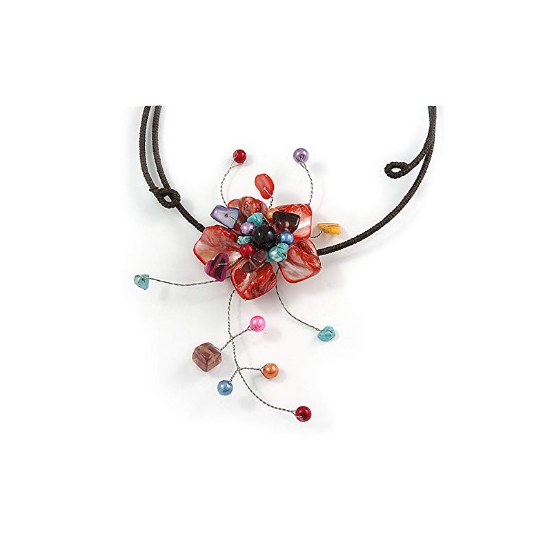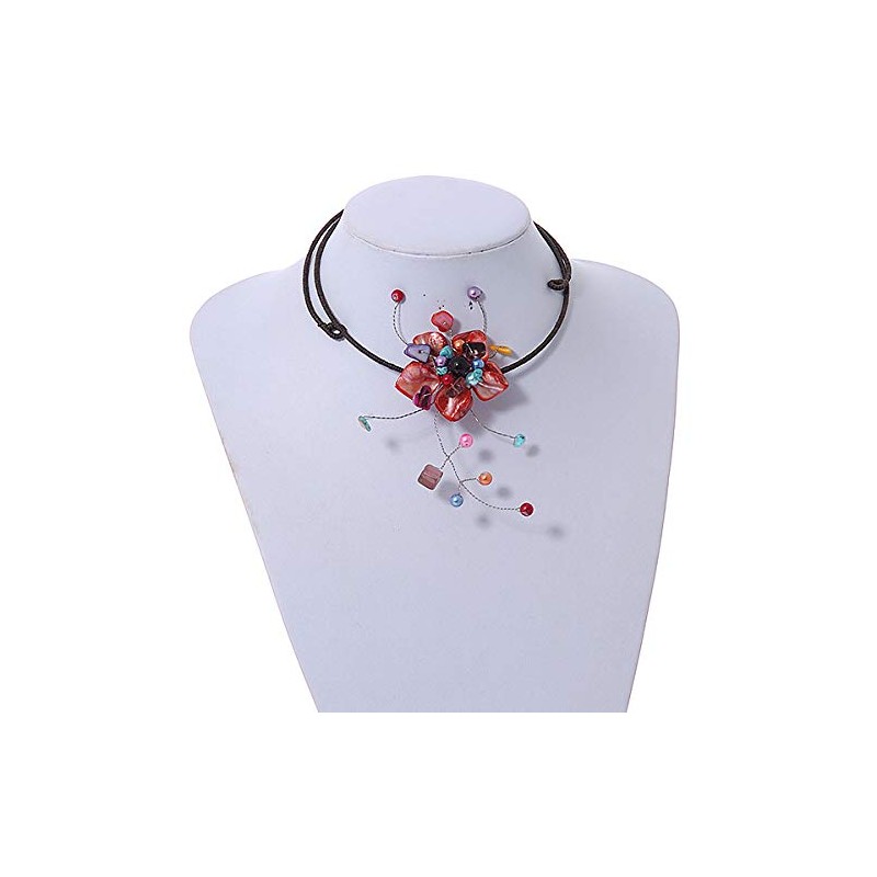 Avalaya Red Shell Flower with Multi Faux Pearl Bead Flex Wire Necklace/ 40cm L/Adjustable