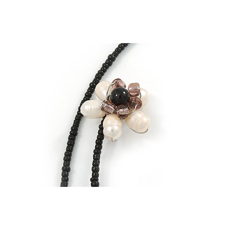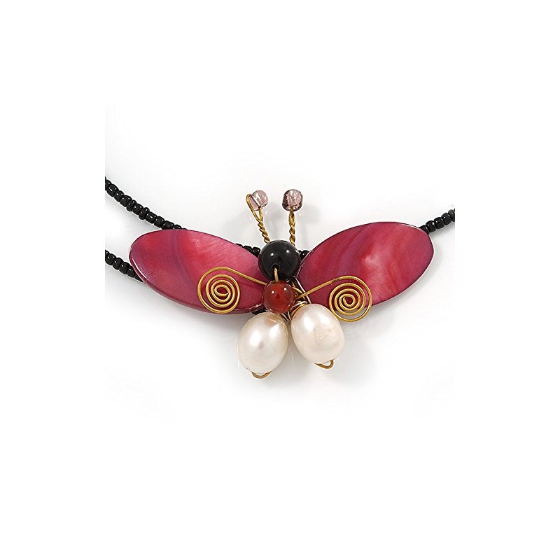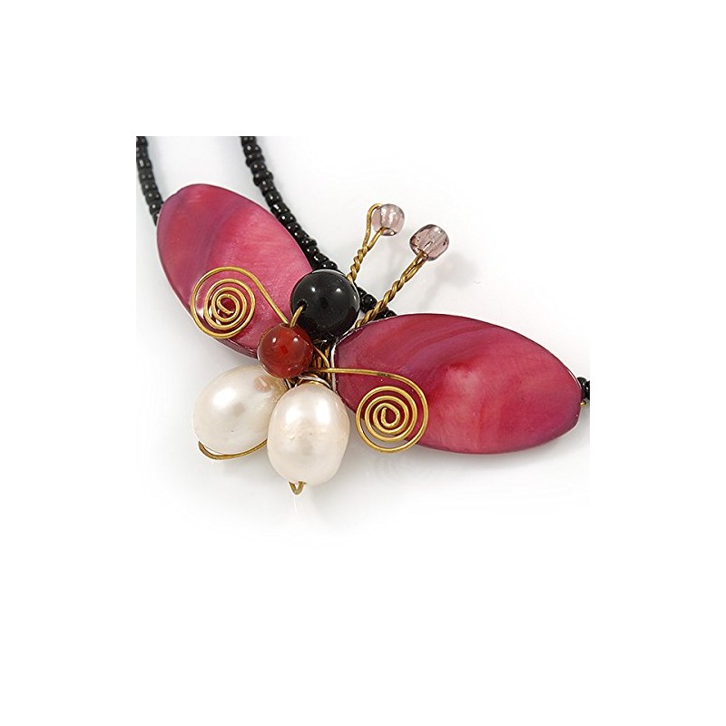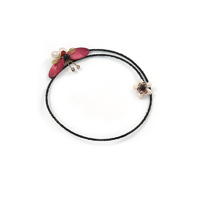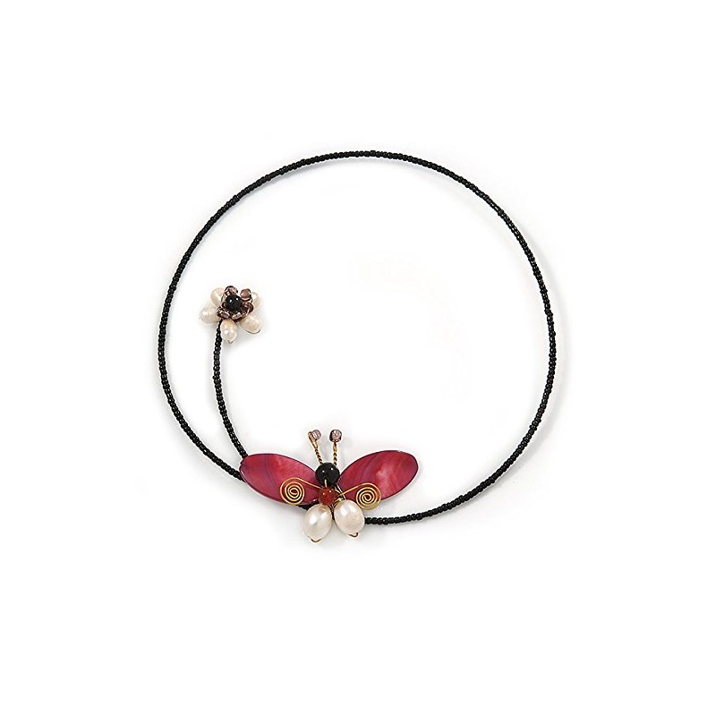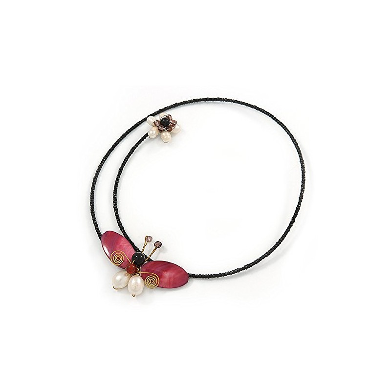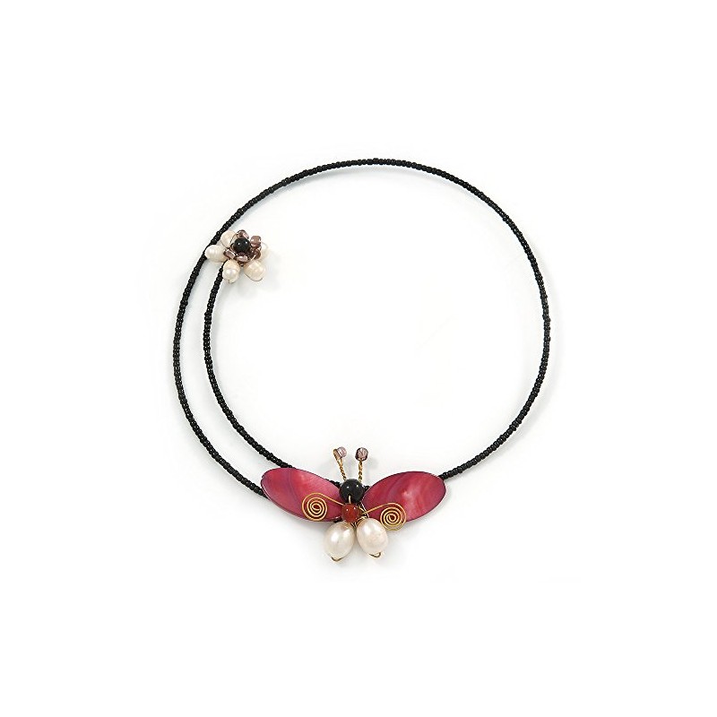 Avalaya Shell Butterfly and Freshwater Pearl Flower Flex Wire Choker Necklace - Adjustable